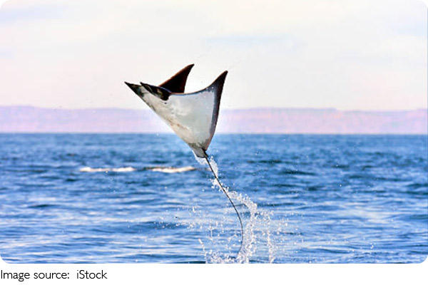 Сенегальская мобула — близкий родственник гигантских мант, но гораздо меньше по размеру и ведет более уединенный образ жизни.