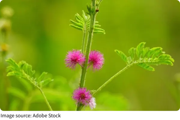 Мимозу часто растят в маленьких горшках для развлечения, но в дикой природе она может расползаться как почвопокровное растение в тёплых регионах. Цветёт маленькими розовыми «пушистыми» цветами, словно из сказочного сада.