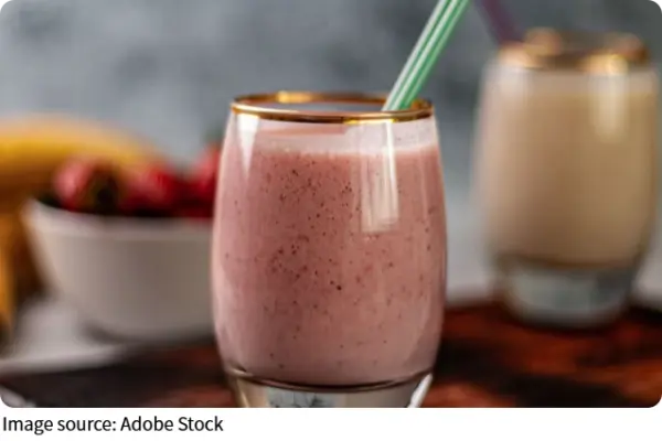 Добавьте сверху несколько сушёных ягод — они украсят напиток и добавят текстуры. Вот и всё — шейк готов! Густой, сладкий, слегка освежающий — он идеально подойдёт и к завтраку, и к полднику.