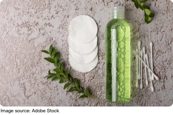 - Примените тоник с ватным диском. Аккуратно проведите по лицу, чтобы освежить и подготовить кожу к следующему шагу.