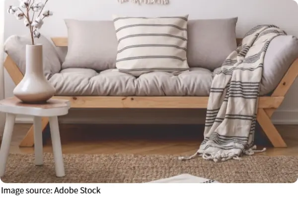 Модульная мебель тоже очень удобна. Она позволяет легко менять расположение предметов. При необходимости можно переставить элементы и адаптировать комнату для разных занятий — семейного отдыха или спокойного вечера с книгой.